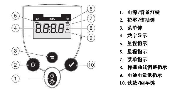 本儀器為便攜式單參數(shù)儀器,用于現(xiàn)場水樣的快速測量。